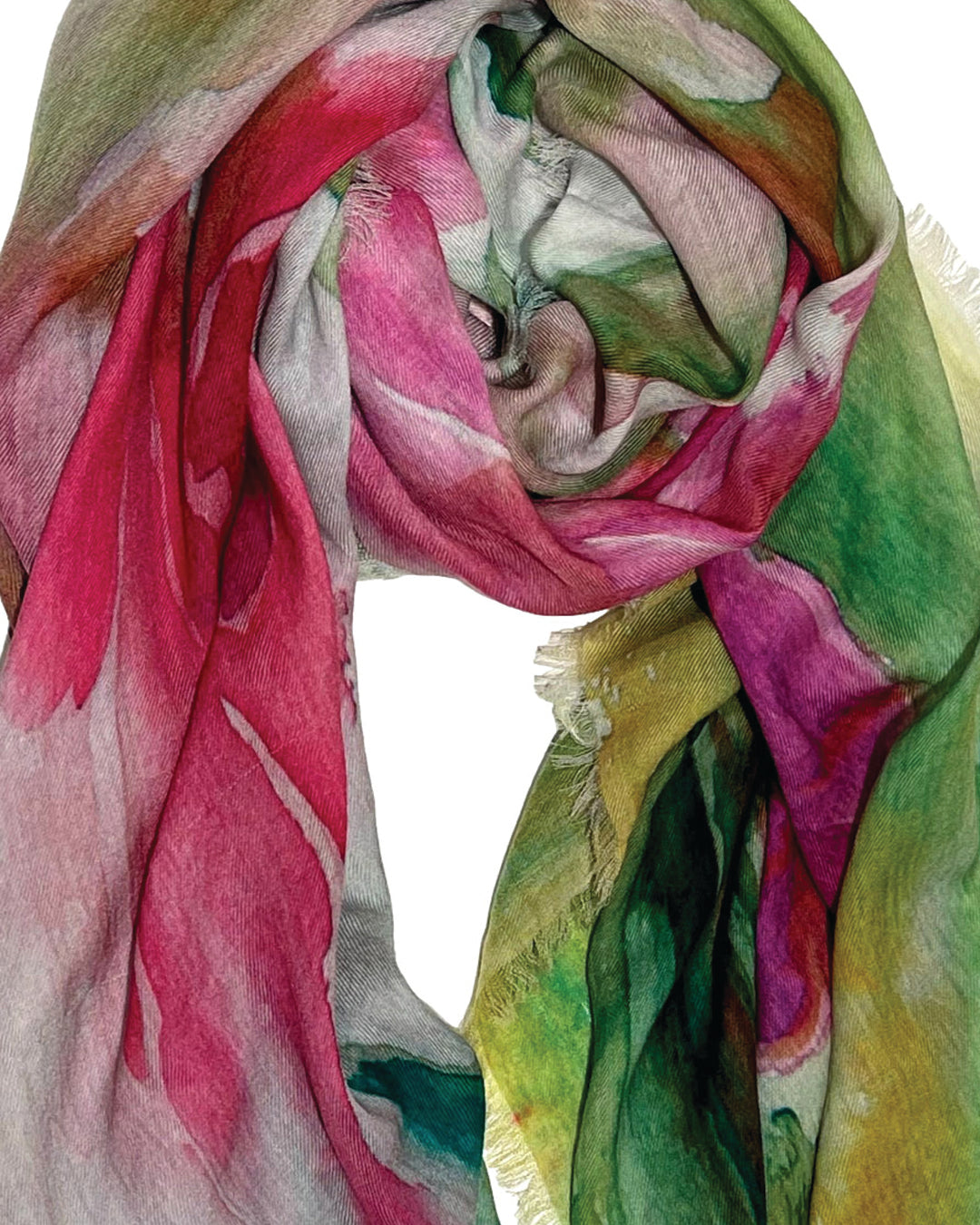 Each design begins as a painting or photograph, a moment of beauty reimagined in silk, cotton, or linen. The result is a collection that feels alive—strong yet soft, expressive yet effortlessly wearable.