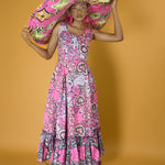 The Binti dress—named after the Swahili word for “daughter”—celebrates culture with a modern, elegant silhouette in vibrant pink African fabric. Complete with a matching hat, it’s perfect for weddings, celebrations, or any occasion to showcase confidence and cultural pride.