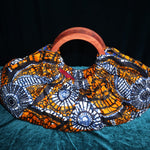 Fabric & Material: 100% cotton African wax print with a textured, structured finish; polished wooden handles for timeless appeal.