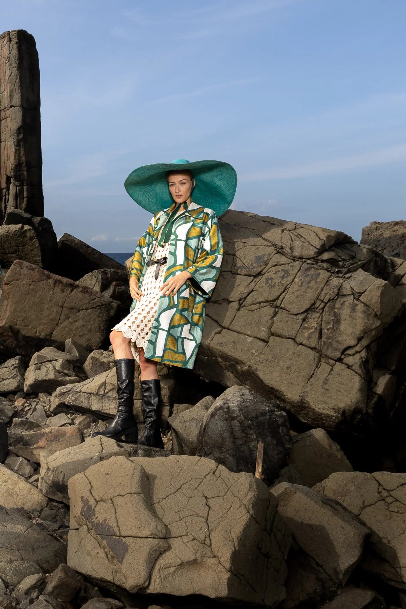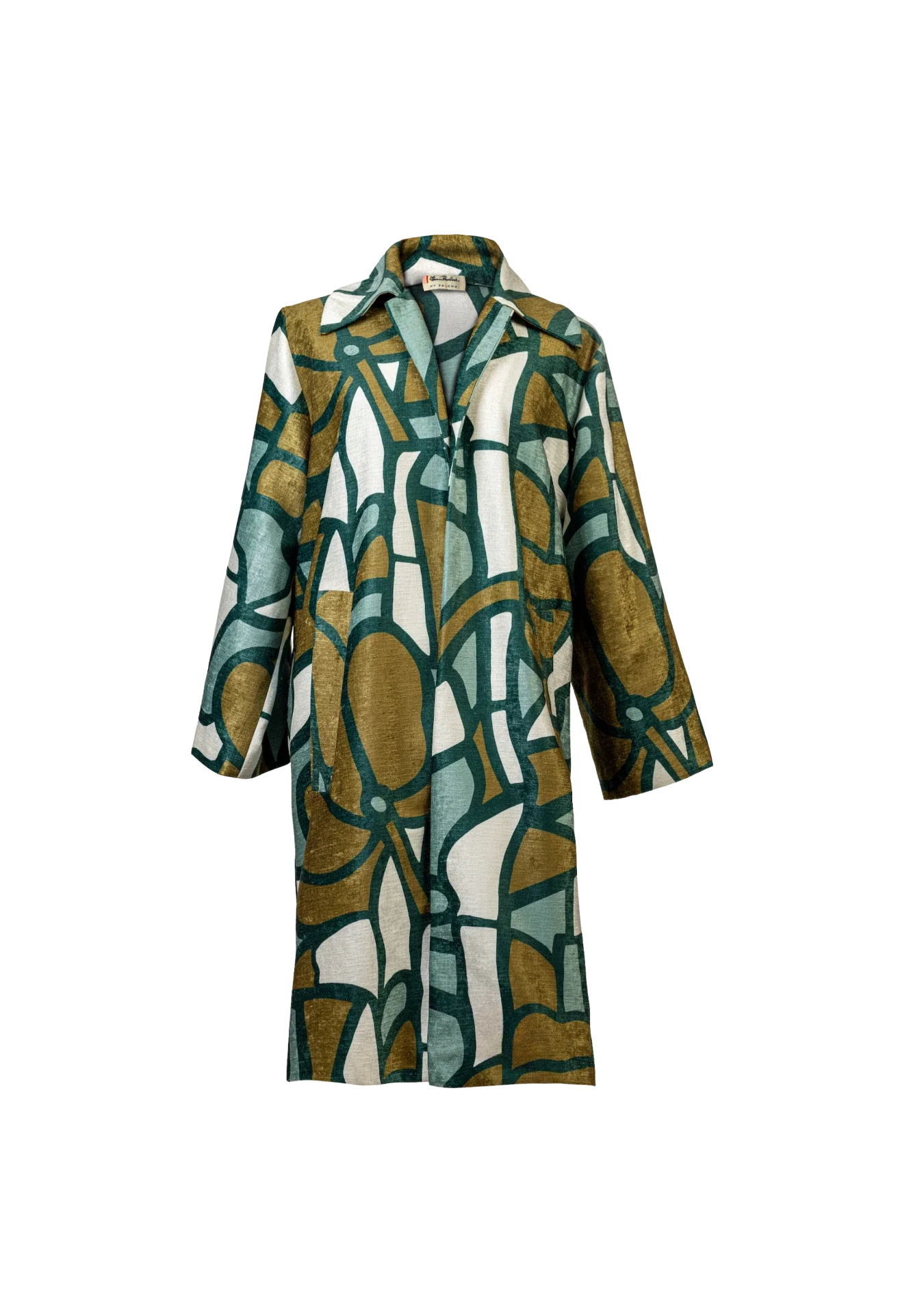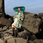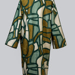 This retro pattern with strong bold lines has been reinterpreted as a tribute to nature in sculptural mineral landscape tones and texture at play. Designed in Australia, it is shaped in an oversized silhouette, featuring a snapped front button, a maxi collar and two generous internal pockets.