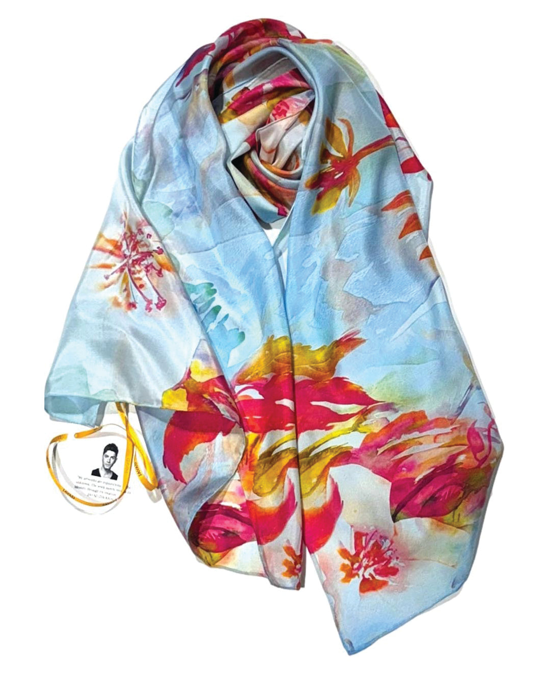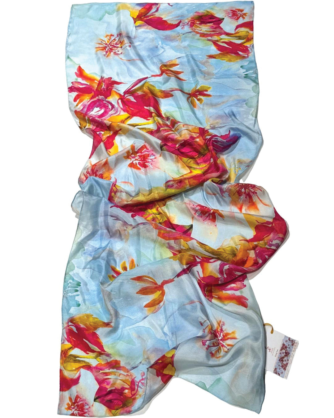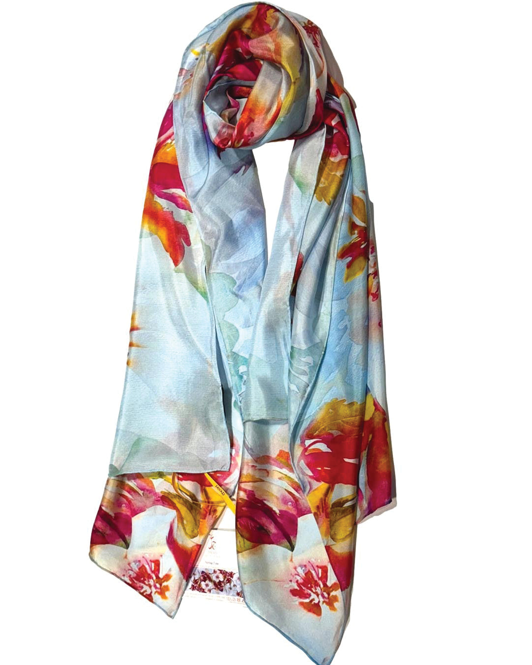 Inspired by Javad's watercolour painting. 100% Silk. 180 cm X 70 cm. Delicately hand rolled.