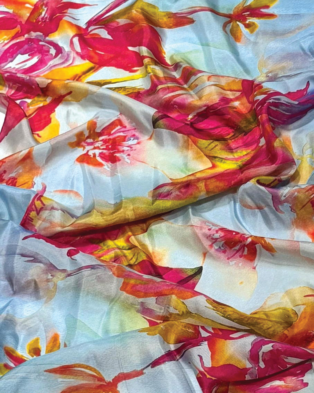 Each design begins as a painting or photograph, a moment of beauty reimagined in silk, cotton, or linen. The result is a collection that feels alive—strong yet soft, expressive yet effortlessly wearable.