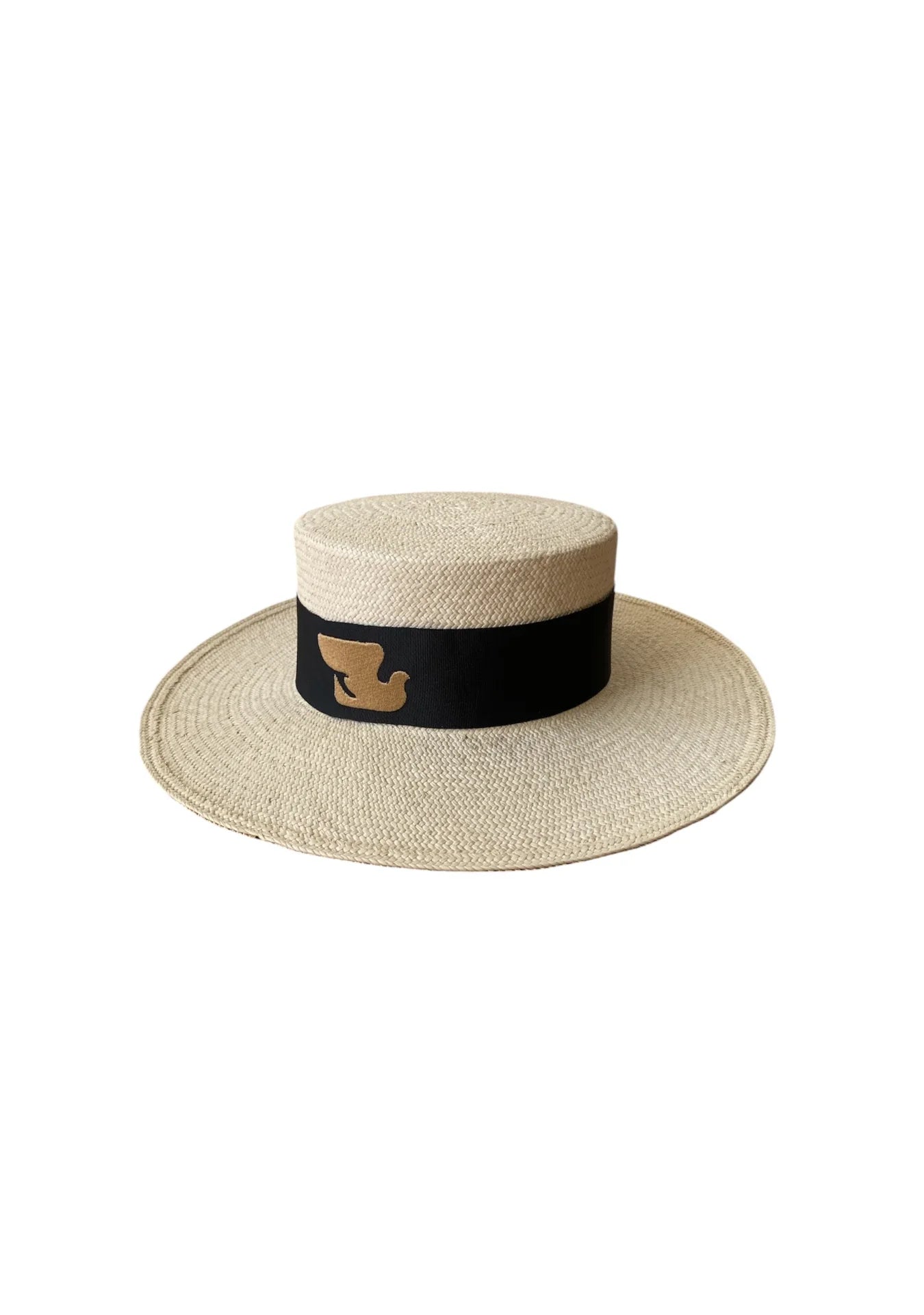 Our Wayra hat features a black grosgrain band embroidered with the brand's signature 'paloma' in gilding antique gold, which is hand-finished in our Sydney studio.